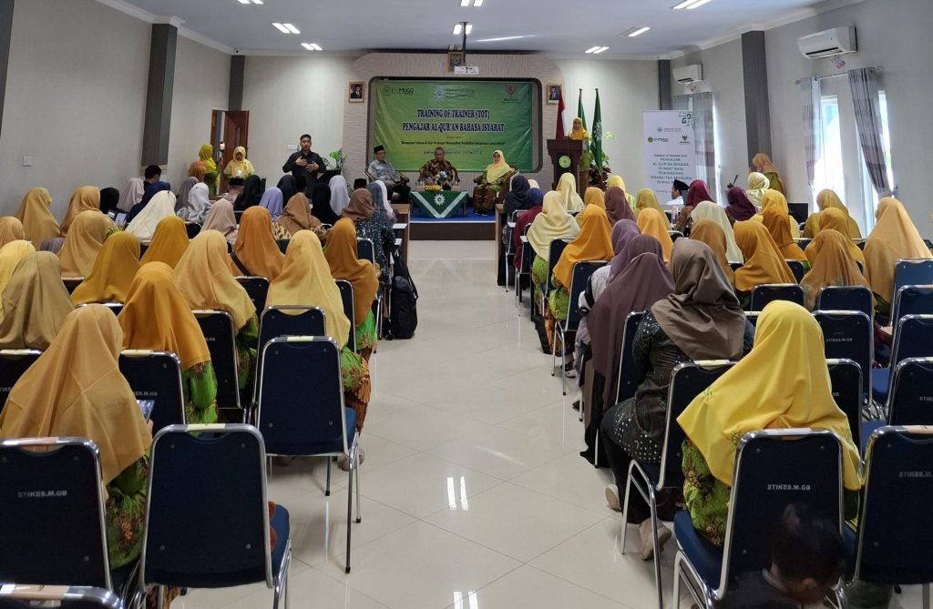 Gombong UNIMUGO – Universitas Muhammadiyah Gombong (UNIMUGO) bersama Majelis Tabligh Pimpinan Pusat (PP) ‘Aisyiyah dan Baznas RI menyelenggarakan Training of Trainers (TOT) Pengajar Al Qur’an Isyarat pada Hari Sabtu – Ahad, 14-15 Juni 2025 dengan peserta seluruh Anggota Pimpinan Cabang ‘Aisyiyah se-Kabupaten Kebumen di Ruang Kuliah 1 Gedung Rektorat UNIMUGO.